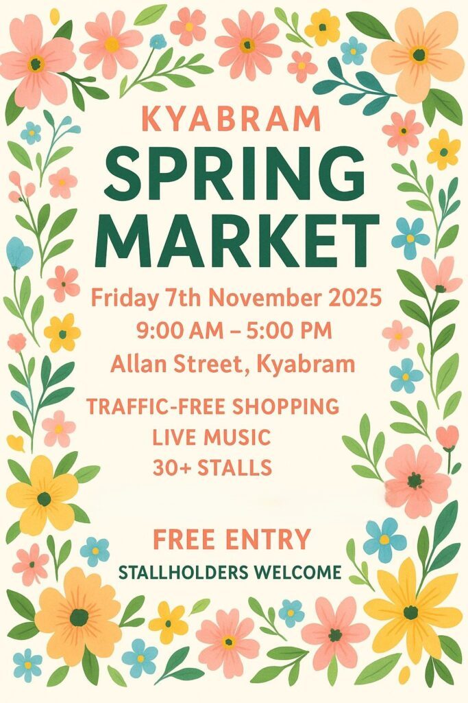 The Spring Market will transform Allan Street into a bustling, traffic-free shopping strip for a day, featuring more than 30 handpicked stallholders alongside local businesses. Coinciding with the RV Country Music Festival, the event will attract hundreds of visitors, stroll the vibrant retail scene and enjoy some live entertainment as you browse!